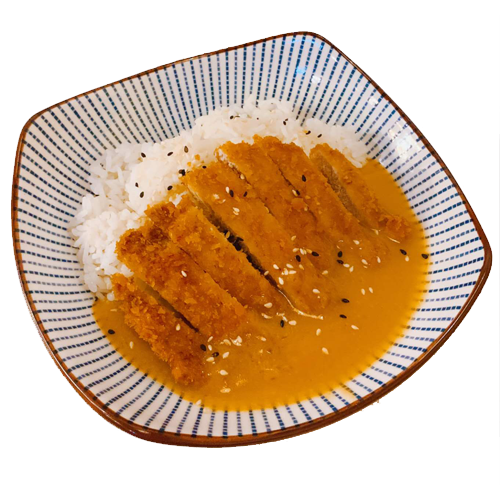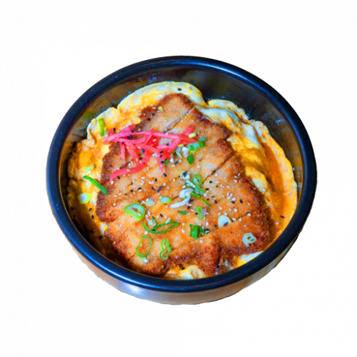 Es un plato japonés muy popular, consistente en un cuenco de arroz cubierto con una chuleta de cerdo rebozada (tonkatsu), huevo revuelto y condimentos.